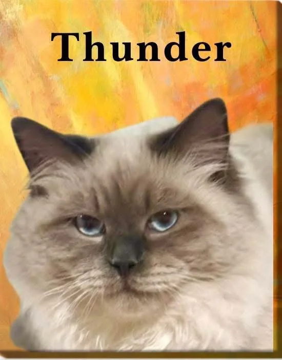 Thunder is a powerful yet gentle Siberian king whose presence commands admiration. His thick, luxurious coat and striking blue eyes reflect the strength and majesty that define the Siberian breed, while his calm, affectionate nature reveals a softer side that endears him to everyone he meets.